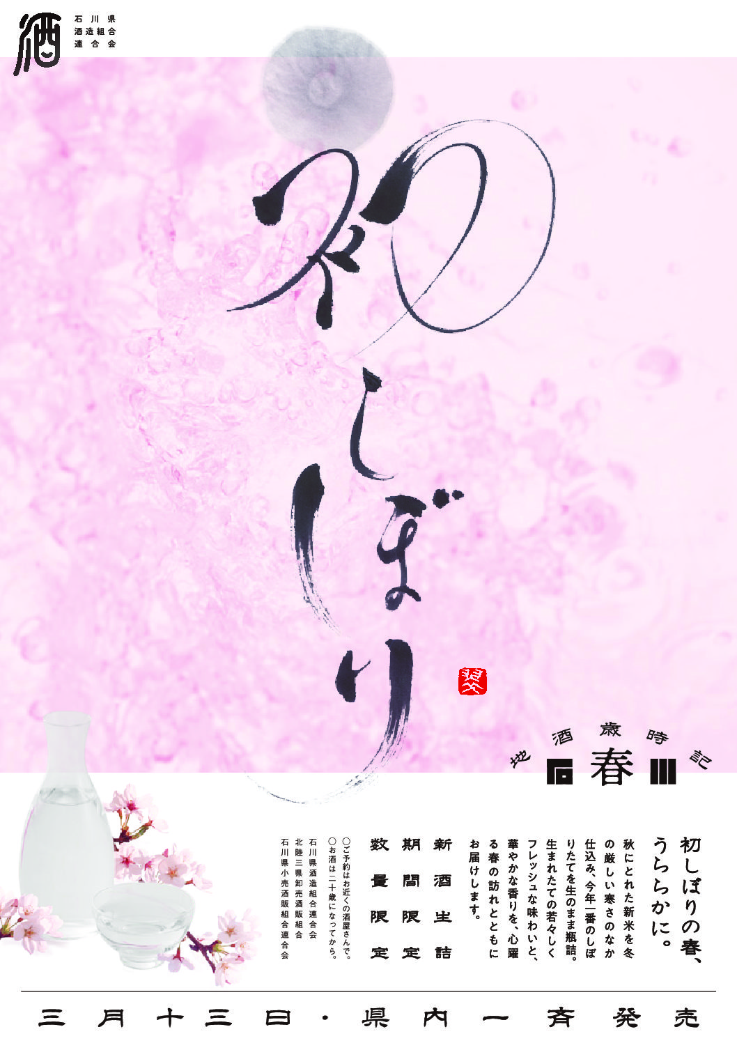石川の地酒歳時記 春「初しぼり」予約受付中です。 3月14日(金)県内一斉発売!